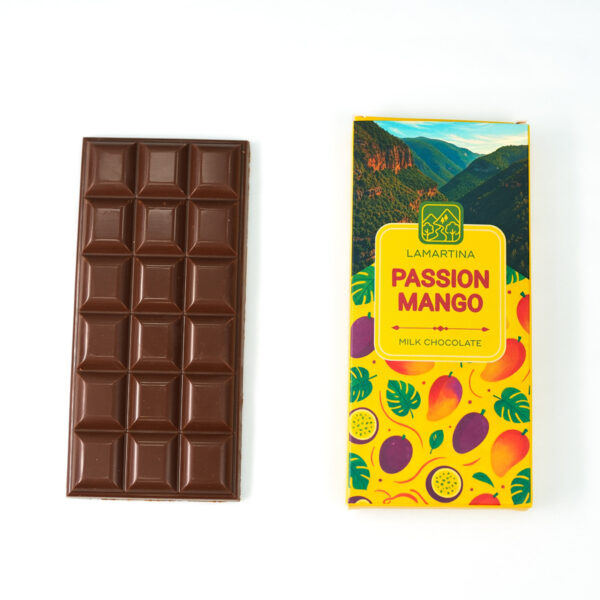 Experience a vibrant tropical twist with the Lamartina Passion Mango Chocolate Bar. Smooth premium chocolate is blended with the refreshing sweetness of ripe mango and the tangy notes of passion fruit creating a perfectly balanced fruity and creamy indulgence. A unique gourmet chocolate bar for those who enjoy bold and exotic flavors.