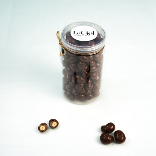 Premium whole cashew nuts coated with a smooth layer of fine chocolate and finished with a delicate dragee shell for the perfect crunch.